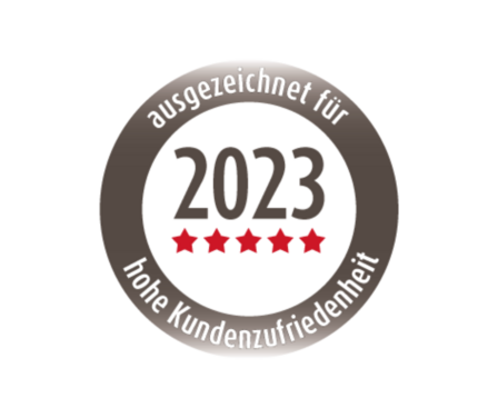 Wir freuen uns sehr, dass wir 2023 wieder mit der maximalen Kundenzufriedenheit ausgezeichnet wurden.