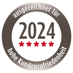 Wir freuen uns sehr, dass wir 2024 wieder mit der maximalen Kundenzufriedenheit ausgezeichnet wurden.