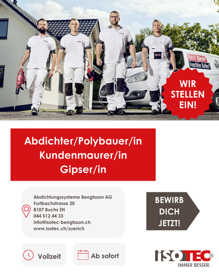 Lukas Aeberli ist gelernter Maurer mit EFZ Abschluss und seit Oktober 2021 als Techniker und seit Januar 2024 als Bauleiter bei ISOTEC - Abdichtungssysteme Bengtsson AG tätig. Lukas Aeberli ist unser kompetenter Bauleiter sowie Coach für die gesamte Schweiz bei der ISOTEC - Gruppe. Mit seinem hohen Fachwissen und seiner langjährigen Erfahrung bringt er wertvolles Know-how in jedes Projekt ein. Lukas Aeberli zeichnet sich durch seine Zuverlässigkeit und sein motiviertes Engagement aus, was ihn zu einem geschätzten Ansprechpartner für unsere Kunden macht. Seine Fähigkeit, komplexe Herausforderungen schnell zu erfassen und Lösungen zu entwickeln, sorgt dafür, dass jedes Bauvorhaben effizient und erfolgreich umgesetzt wird. Ob bei der Planung, während der Umsetzung oder in der Nachbetreuung – Lukas Aeberli steht Ihnen jederzeit mit Rat und Tat zur Seite.