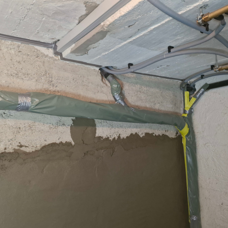 Die Sanierung des feuchten Kellers in Schlatt TG begann mit der Installation einer nachträglichen ISOTEC-Horizontalsperre. Diese Massnahme zielte darauf ab, das Aufsteigen von Feuchtigkeit im Mauerwerk zu verhindern. Die ISOTEC-Horizontalsperre wurde eingesetzt, um einen wirksamen Sperrgürtel gegen kapillare Feuchte zu schaffen. Zunächst wurden Bohrlochinjektionskanäle im durchfeuchteten Mauerwerk erstellt. Nach Durchführung der Injektion würden die Bohrlöcher kraftschlüssig mit ISOTEC-Dichtspachtel verschlossen. Zusätzlich wurde eine ISOTEC-Innenabdichtung mit Hohlkehle installiert. Der Untergrund wurde sorgfältig vorbereitet, um eine optimale Haftung zu gewährleisten. Zunächst wurden lose Putz- und Farbreste entfernt. Danach folgte das Auftragen eines Spritzbewurfs zur Verbesserung der Haftung des ISOTEC-Dichtputzes. Im Wand-Sohlen-Bereich wurde eine Hohlkehle ausgebildet, um den Anschluss wasserdicht zu gestalten. Die abschliessende ISOTEC-Kombiflexabdichtung wurde in zwei Lagen aufgetragen, um eine dauerhafte Abdichtung zu gewährleisten.