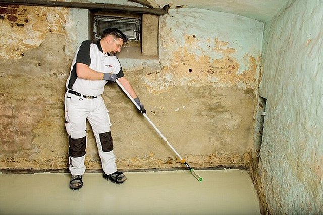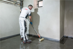 Das Besondere an unserem Verfahren ist sicherlich auch, dass es bereits ab einer Schichtdicke von nur vier Millimetern die aufsteigende Feuchte dauerhaft stoppt, die bisher ungehindert durch den Kellerboden aufsteigen konnte. Bereits vier Stunden nach Abschluss unserer Arbeiten ist der Boden wieder begehbar, nach 48 Stunden vollkommen nutzbar. Abschliessend kann der Boden dann mit einer speziellen Fussbodenfarbe ganz nach eigenem Gusto gestaltet werden.