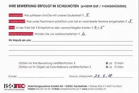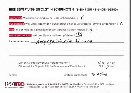 Aktuelles von der Abdichtungssysteme Scheibli AG aus Humlikon bei Andelfingen