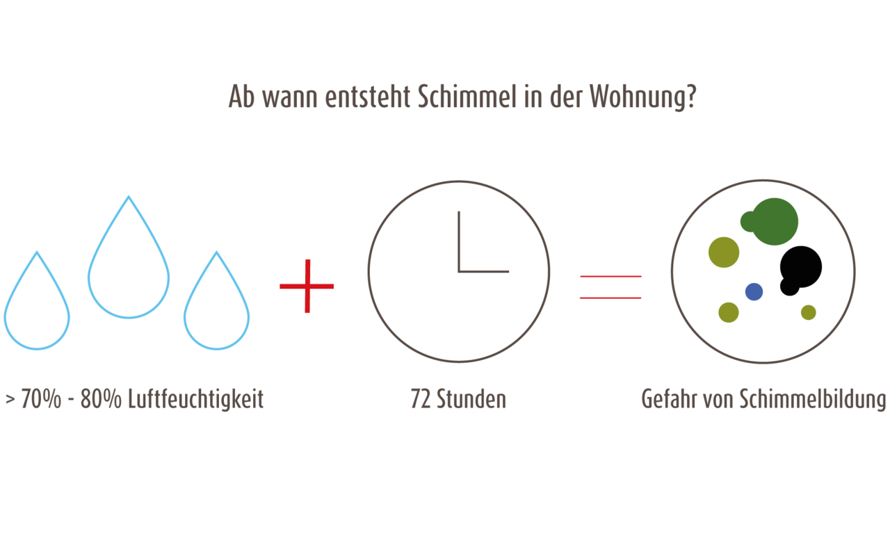 Grundsätzlich kann man sagen, dass für die Bildung und das Wachstum von einigen Schimmelpilzarten eine relative bauteilangrenzende Luftfeuchtigkeit von 70% bis 80% über eine Zeitspanne von 72 Stunden ausreicht. Dennoch kann es verschiedene Ursachen für Schimmel in der Wohnung geben.