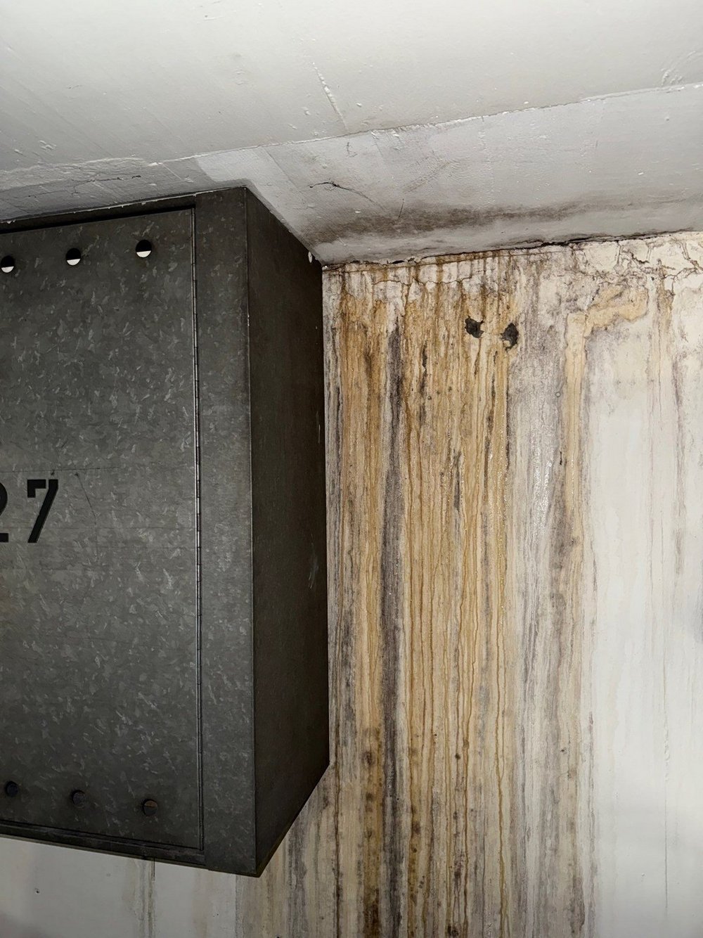 • Schaden Wasserschaden, Risse im Beton, feuchte Wand