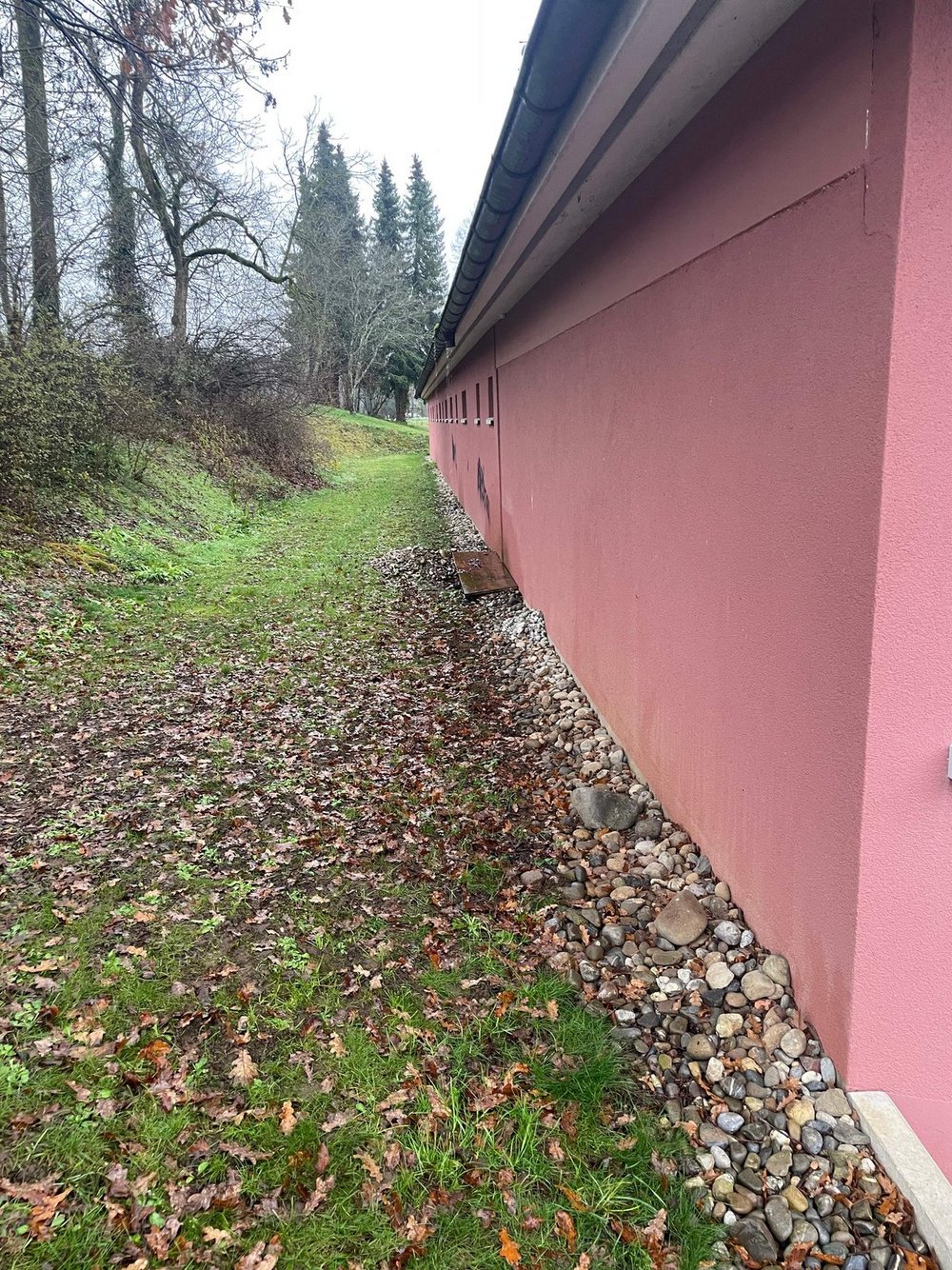 In der Umkleidekabine der Schule trat regelmässig Feuchtigkeit auf. Diese führte zu einem unangenehmen Raumklima und machte die Nutzung der Kabine unattraktiv. Der Wassereintritt war deutlich sichtbar und beeinträchtigte die Bausubstanz. Die Bausubstanz war solide, jedoch durch die Feuchtigkeit stark in Mitleidenschaft gezogen. Besonders problematisch war, dass die Feuchtigkeit nicht nur oberflächlich sichtbar war, sondern auch tiefere Schichten erreichte. Eine gründliche Sanierung war notwendig, um die strukturelle Integrität des Gebäudes zu sichern und den Nutzern einen angenehmen Aufenthalt zu ermöglichen.