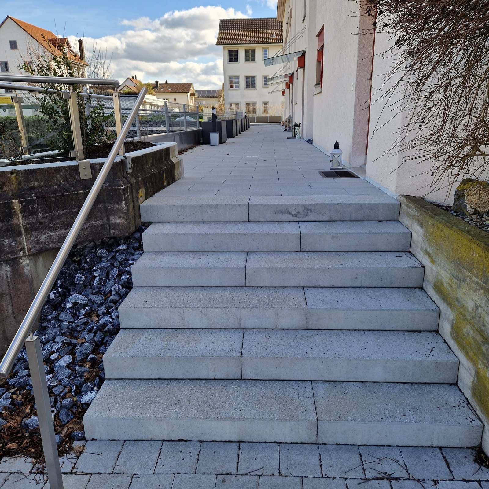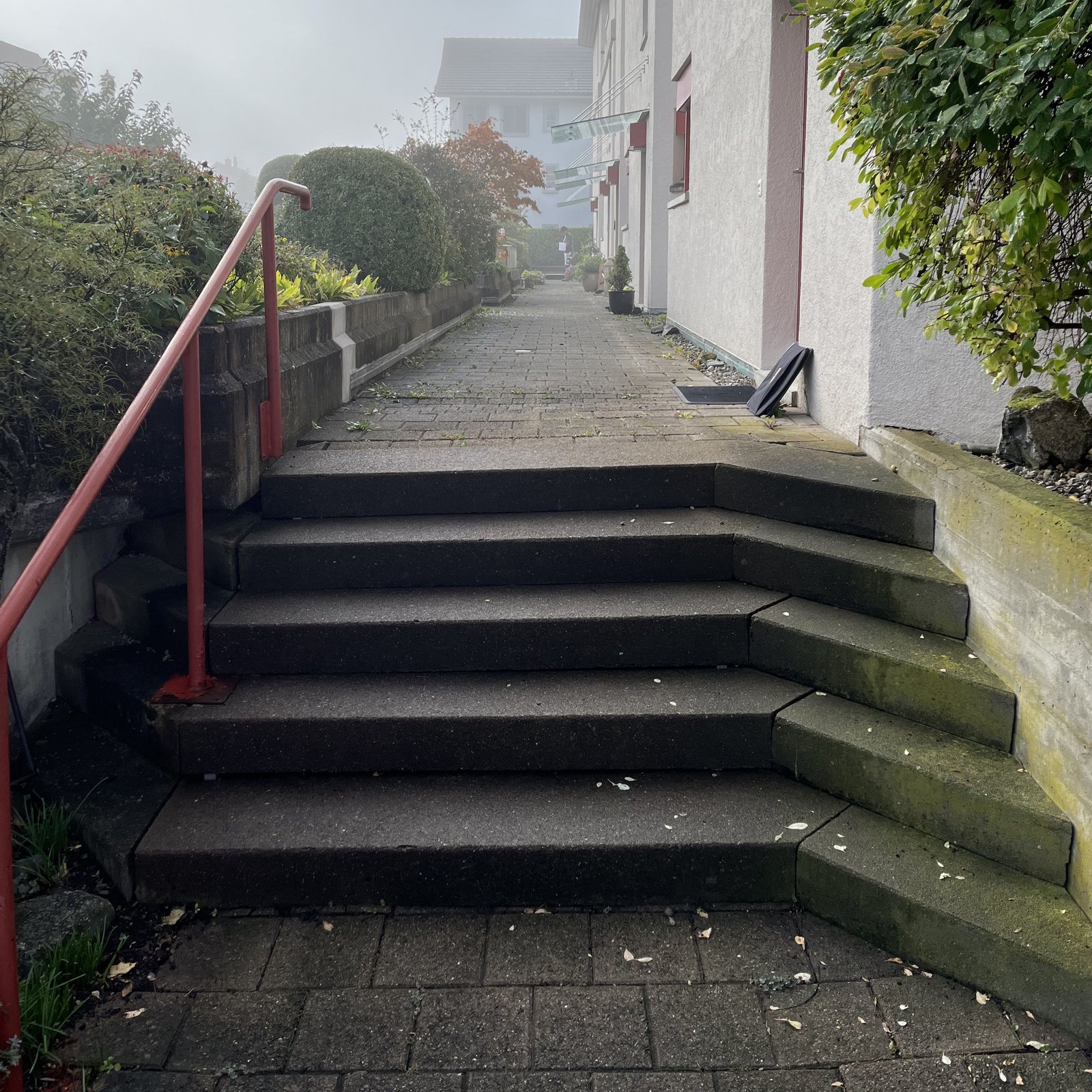 Das Ergebnis lässt sich sehen. Die Betonbauteile sind geschützt und der Zugang zu den jeweiligen Wohnungen sieht sehr einladen aus.