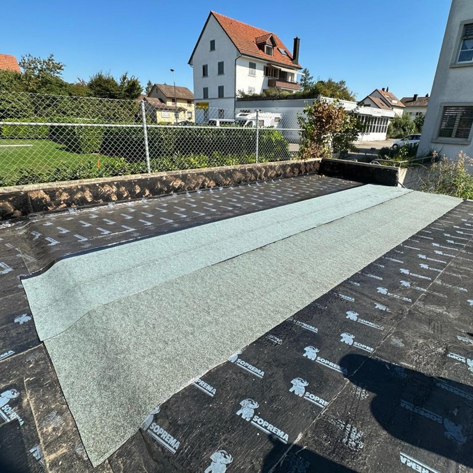 Die 1. Lage EGV 3 Flam Flam wird vollflächig aufgeschweisst.