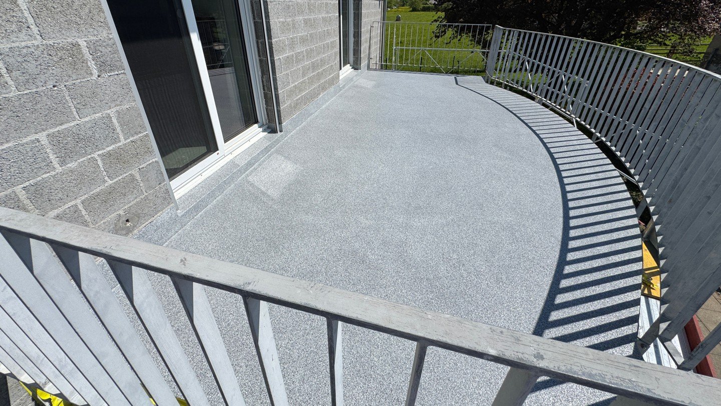 Für die Sanierung des Balkons in Lipperswil wurde das bewährte ISOTEC-System mit Decotan eingesetzt. Der erste Schritt bestand im Aufbau eines stabilen Gerüsts, um sicheren Zugang zu allen Bereichen des Balkons zu gewährleisten. Anschliessend wurde das bestehende Geländer demontiert, um eine vollständige Bearbeitung der Oberfläche zu ermöglichen. Die Sanierung begann mit der gründlichen Reinigung und Vorbereitung des Untergrunds. Dabei wurde der Gefälleestrich sorgfältig abgeschliffen und entstaubt, um eine optimale Haftung der folgenden Schichten sicherzustellen. Eine spezielle ISOTEC-Grundierung wurde aufgetragen, um die Fläche vorzubereiten. Danach kam der ISOTEC-Flüssigkunststoff zum Einsatz, der durch seine hohe Elastizität und UV-Beständigkeit überzeugt. Der Flüssigkunststoff wurde in mehreren Schichten aufgetragen und mit einem Vlies verstärkt, um Risse dauerhaft zu überbrücken. Diese Methode gewährleistet eine nahtlose Abdichtung ohne Schwachstellen, die bei herkömmlichen Abdichtungen mit Bahnen auftreten können. Abschließend wurde das Geländer wieder montiert, wobei auf eine korrekte Abdichtung der Anschlussstellen geachtet wurde. Die gesamte Sanierung gewährleistet nicht nur Schutz vor Feuchtigkeit, sondern auch eine verbesserte Optik und Langlebigkeit des Balkons.
