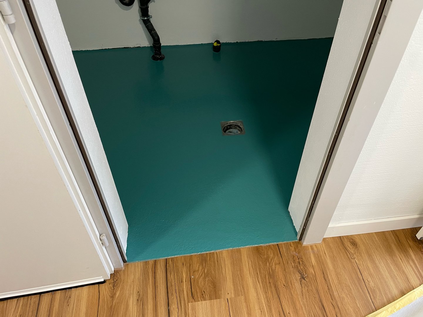 Liefern und applizieren der Beschichtung. Produkt Mapefloor Finish 451 Schichtstärke ca. 4mm Belag fertig applizieren, leicht raue Oberfläche (ruschthemend) Farbe nach RAL 7035
