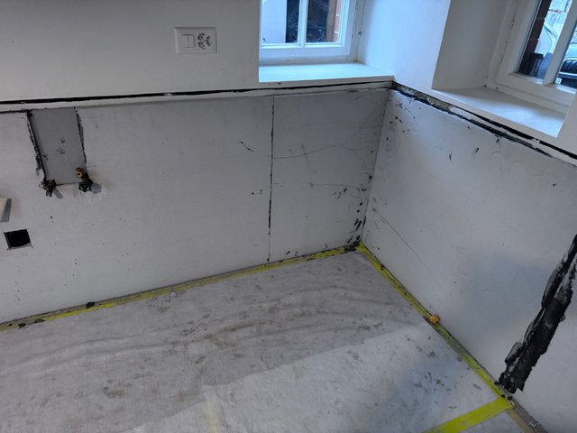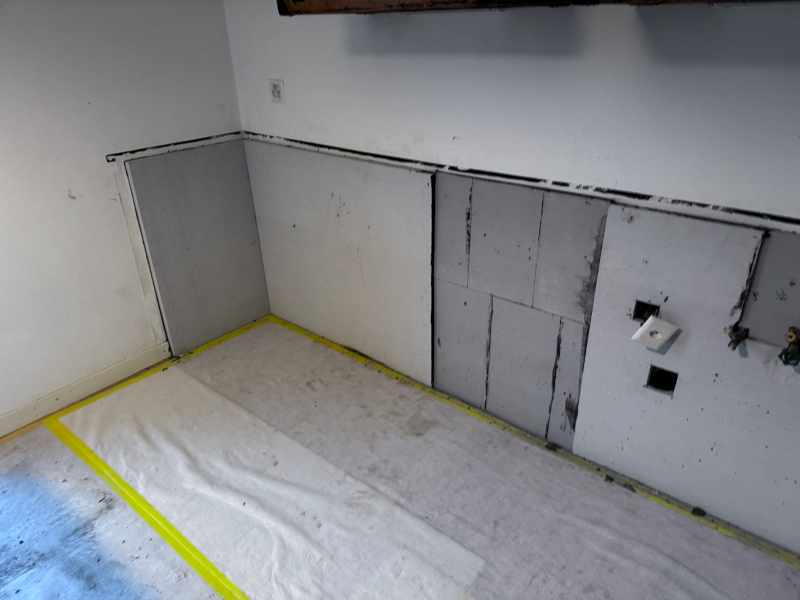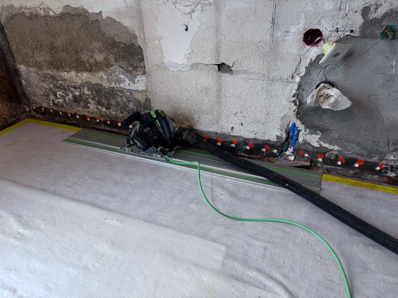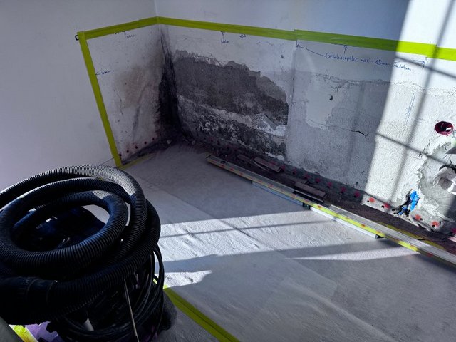 Die Sanierung des Einfamilienhauses in Dättlikon umfasste mehrere Schritte, um die Abdichtung und den Schutz vor Schimmel zu gewährleisten. Zunächst wurde eine Horizontalsperre eingebaut. Dieses Verfahren verhindert kapillar aufsteigende Feuchte, indem es eine Sperrschicht im Mauerwerk schafft. Anschliessend erfolgte die Innenabdichtung, bei der die Wandflächen mit dem ISOTEC-Kombiflexabdichtungssystem behandelt wurden. Dieses zweilagige System sorgt für eine dauerhafte Abdichtung und schützt vor seitlich eindringender Feuchtigkeit. Die Klimaplatte aus Calciumsilikat wurde verwendet, um Kondensationsfeuchte zu regulieren und Schimmelwachstum zu verhindern. Jeder Schritt wurde sorgfältig geplant und ausgeführt, um die langfristige Sicherheit und den Werterhalt des Hauses zu gewährleisten.